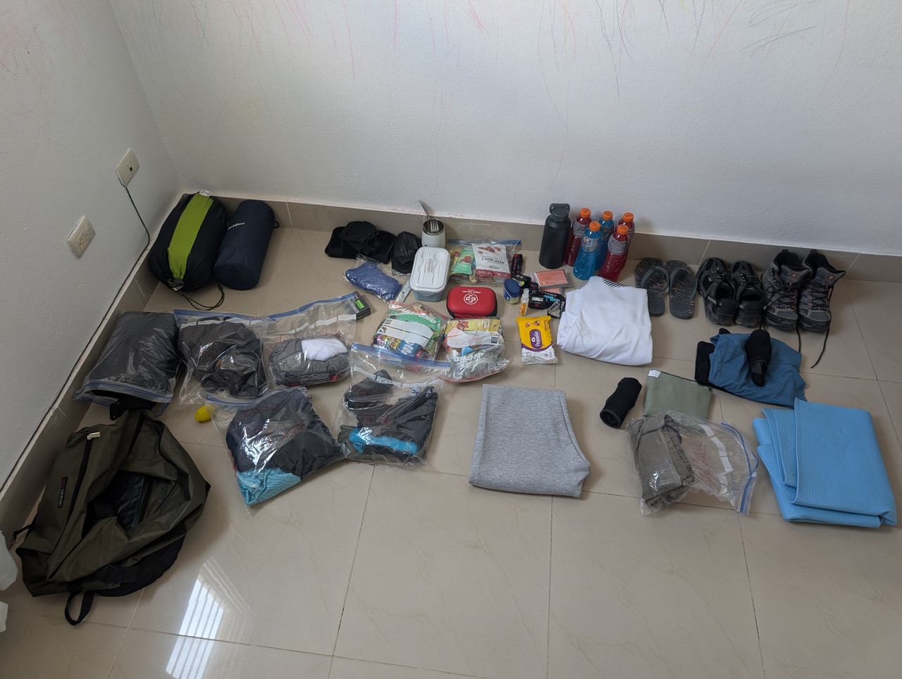 | Bloqueador solar | Gorro para frio | Jarro | 1 Tenis | Jabon | Head Lamp recargable | Mapas offline |